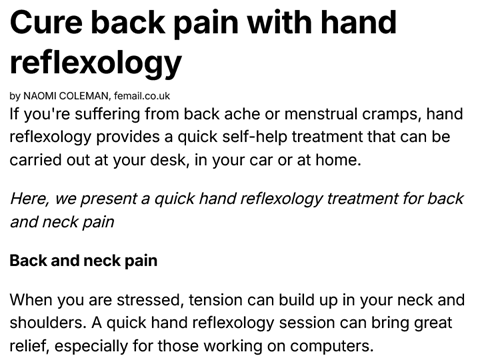 Here’s a few links to articles from newspapers around the web that talk about Reflexology and many of the ways it can help the body: